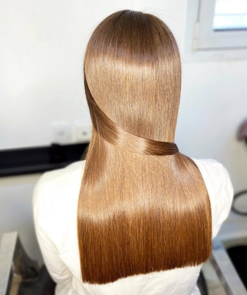 השילוב המנצח בין תוצאה של החלקה יפנית (חלק מאוד) לקרטין (שיקום השיער)